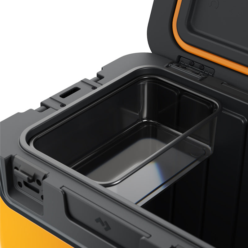 - Removable non-skid lid opens from either side for easy access