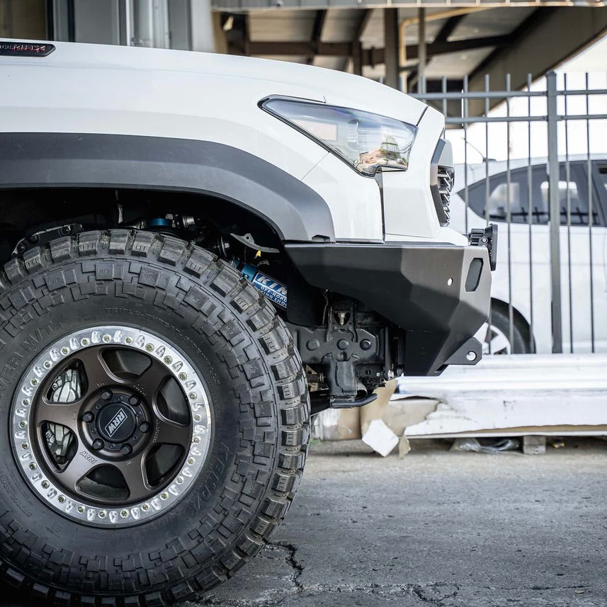 This version is engineered specifically for the 2024+ Toyota Tacoma (4th Gen) and is manufactured in the USA using CNC precision cutting and robotic welds for strength and consistency. Total bumper weight comes in around 70 lb—remarkably light for a full-protection setup—making it the lightest high-clearance bumper in its class.