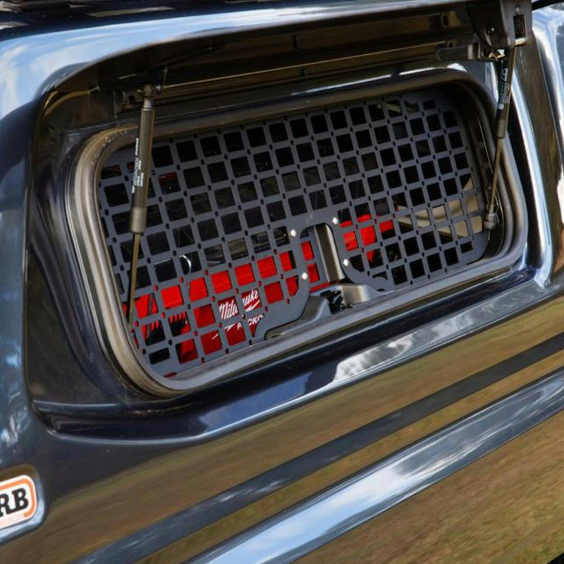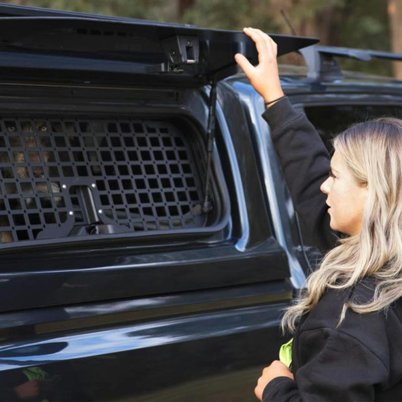 The laser-cut MOLLE grid allows essential gear to be mounted within easy reach, making it well suited for mounting control panels, accessory controls, and quick-access items. Constructed from tough, powder-coated steel, the mesh also acts as a visual and physical security barrier, helping deter unwanted access and protect canopy contents from prying eyes.