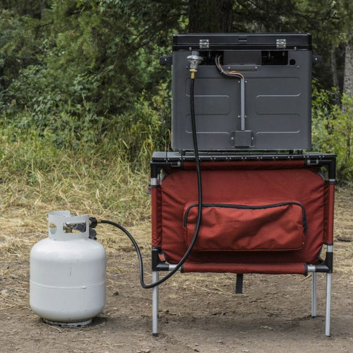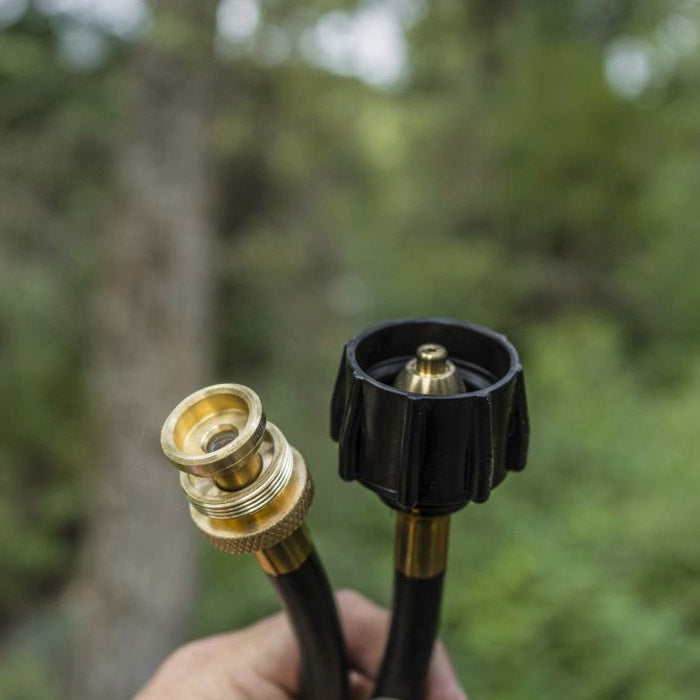 Upgrade your fuel setup with the Camp Chef HRDSP Bulk Tank Hose Adapter. This 5-foot propane hose lets you connect your Camp Chef stove or appliance directly to a standard 20 lb. bulk propane tank, giving you longer run times and eliminating the need for disposable 1 lb. bottles.