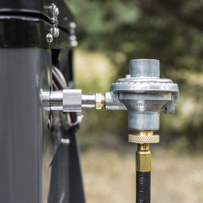 Perfect for extended camping trips, overlanding, tailgating, or backyard cooking, the HRDSP is a must-have for anyone using their Camp Chef stove regularly. With a 1/4" female thread connection and POL tank fitting, this adapter is compatible with most Camp Chef cooking systems and accessories.