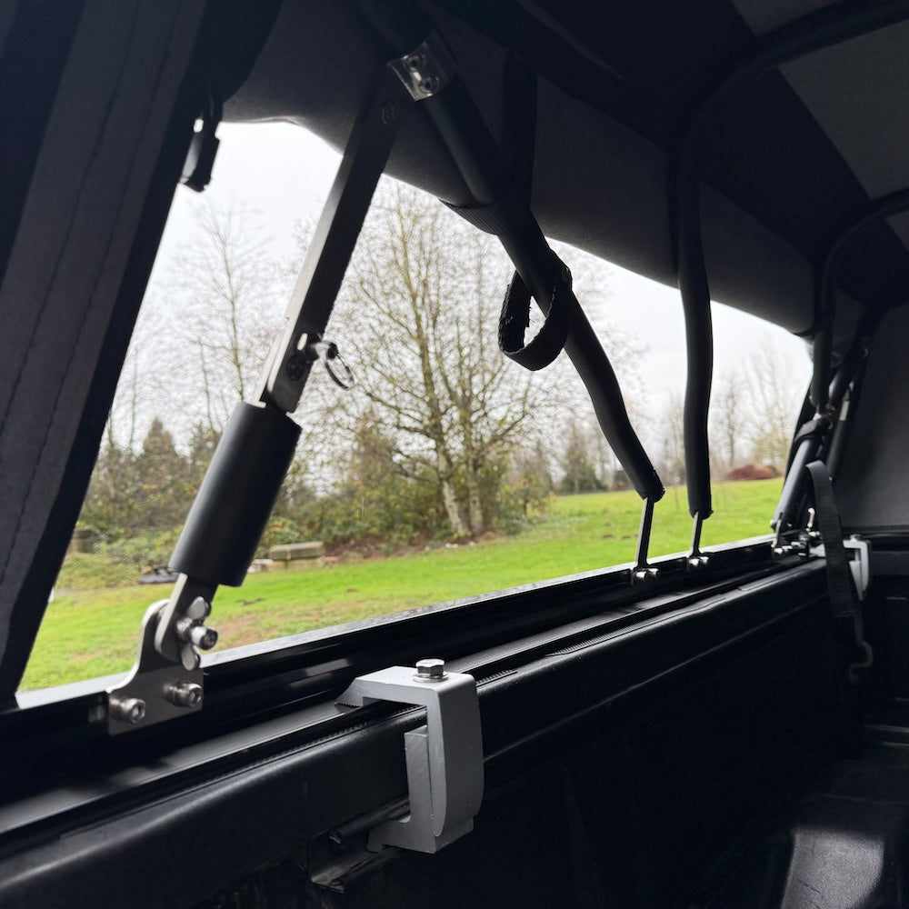 - Roll-up side curtains and rear window for ventilation and access